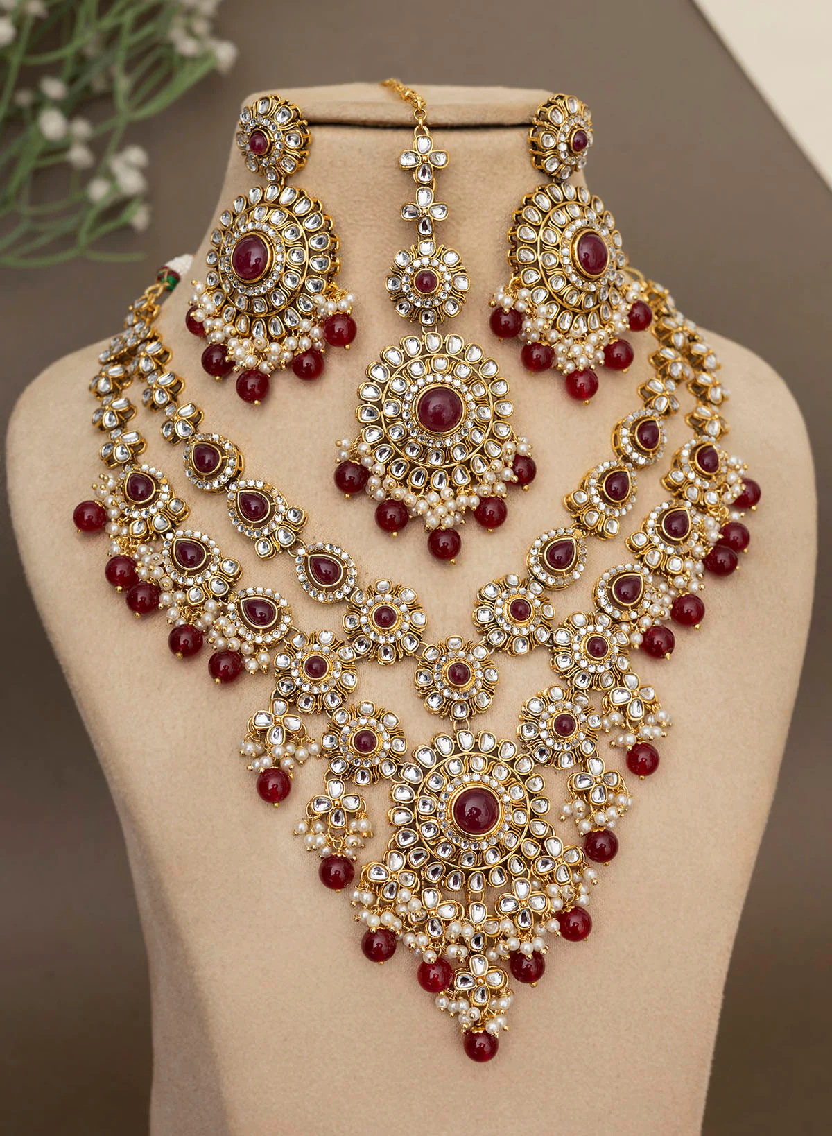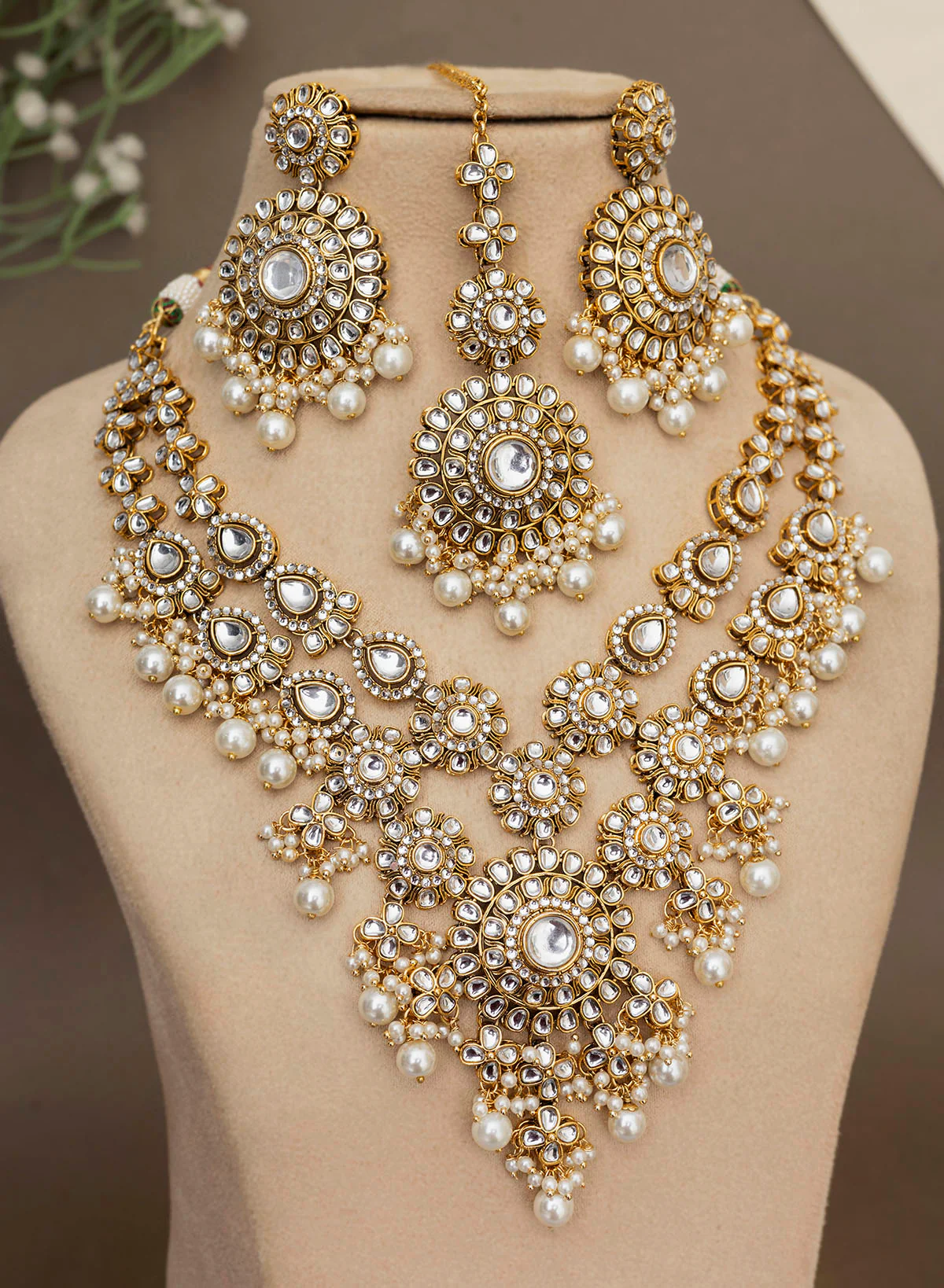 Occasion: Selecting the perfect wedding necklace set involves considering the neckline of your dress, your personal style, and how the pieces will complement your overall look .Add some beauty to your jewellery collection with these gold plated kundan stone necklace set .These necklace set will elevate your look on this wedding occasion, sangeet , marriage ,engagement, karwacahuth.